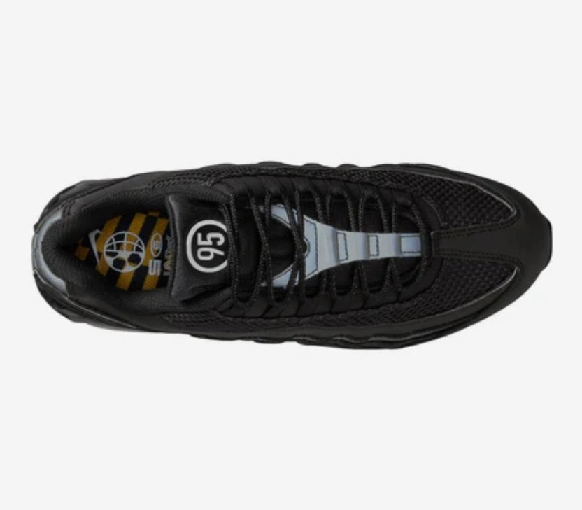 The Nike Air Max 95 “Black / White – University Gold” revisits one of the most influential silhouettes in the history of the Air Max lineage. Designed originally in 1995 by Sergio Lozano, the Air Max 95 was a radical departure from the running shoes that came before it. Its layered construction, visible forefoot Air units, and anatomical inspiration made it one of the most recognizable sneakers ever created.