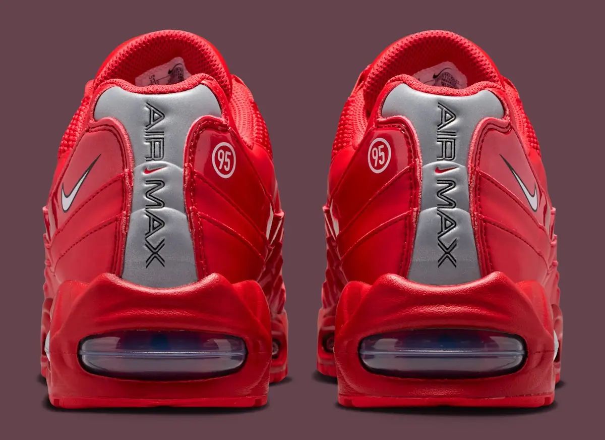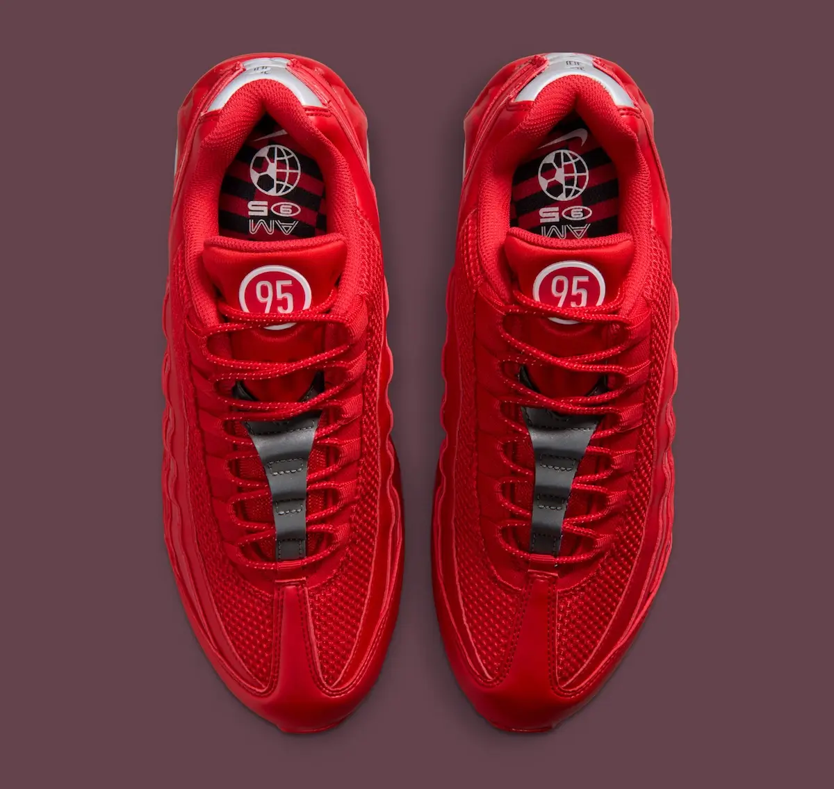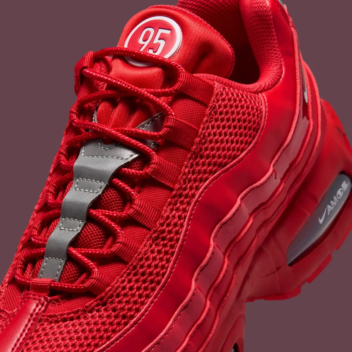 This chromatic decision reframes the Air Max 95 entirely. Where the original leaned into natural tones and organic reference, this version introduces something sharper, more engineered. The red carries connotations of performance—speed, intensity, impression—aligning more closely with the ethos of the Nike Total 90 than with the contemplative origins of the 95.