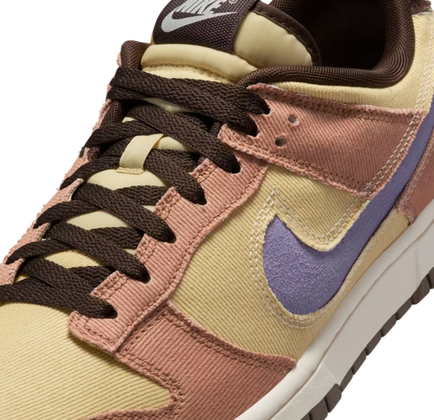 The use of denim as the primary material is a significant departure from the norm for Nike Dunks, which are typically constructed from leather or suede. This choice not only sets the “Denim/Dusted Clay” Dunk apart but also adds a layer of complexity and storytelling to the sneaker.