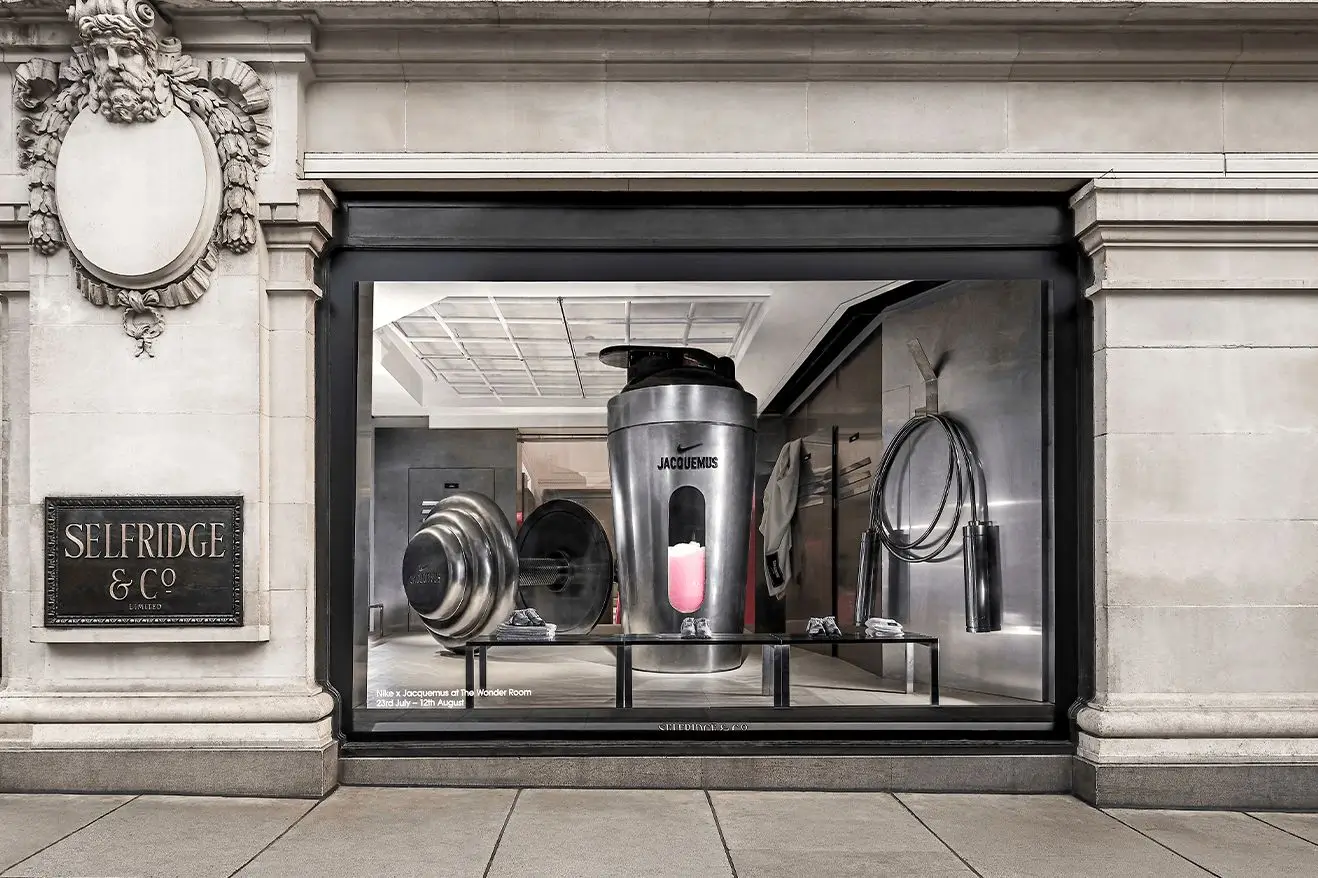 The installation’s impact was amplified by its placement inside Selfridges. The department store has a history of treating retail as cultural expression. Its windows and Wonder Room have long served as platforms for experimentation, offering designers the opportunity to stage ideas that extend beyond product display. For many visitors—local or international—Selfridges is not simply a store but a landmark of creative retail. The Nike × Jacquemus takeover fit naturally into this lineage.