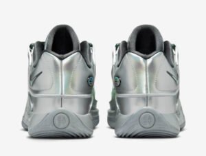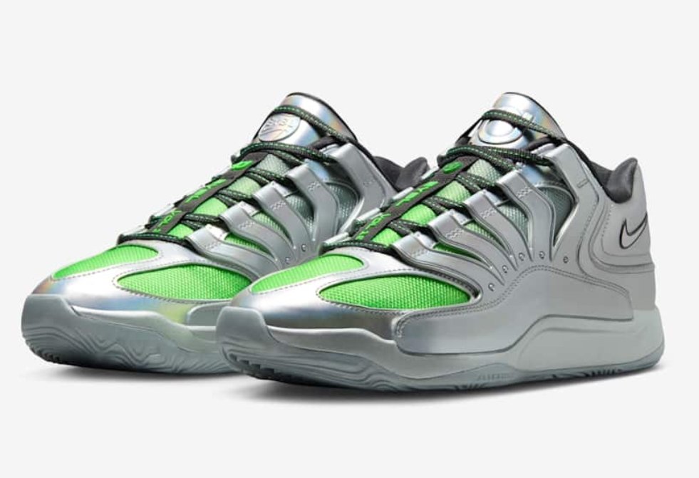 First impressions of the KD 18 EYBL “Metallic Green Strike” are nothing short of striking—an unapologetically bold visual statement designed to turn heads whether on the court or off. The base of the shoe shimmers with a bright metallic green finish, a hue that shifts subtly under different lights. It speaks directly to the energy and unpredictability of youth athletes, who, much like the shoe’s color, refuse to be pinned down or defined by one dimension.