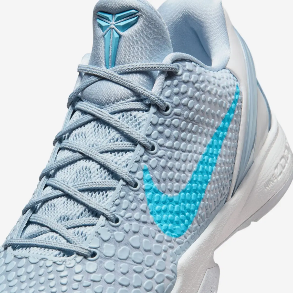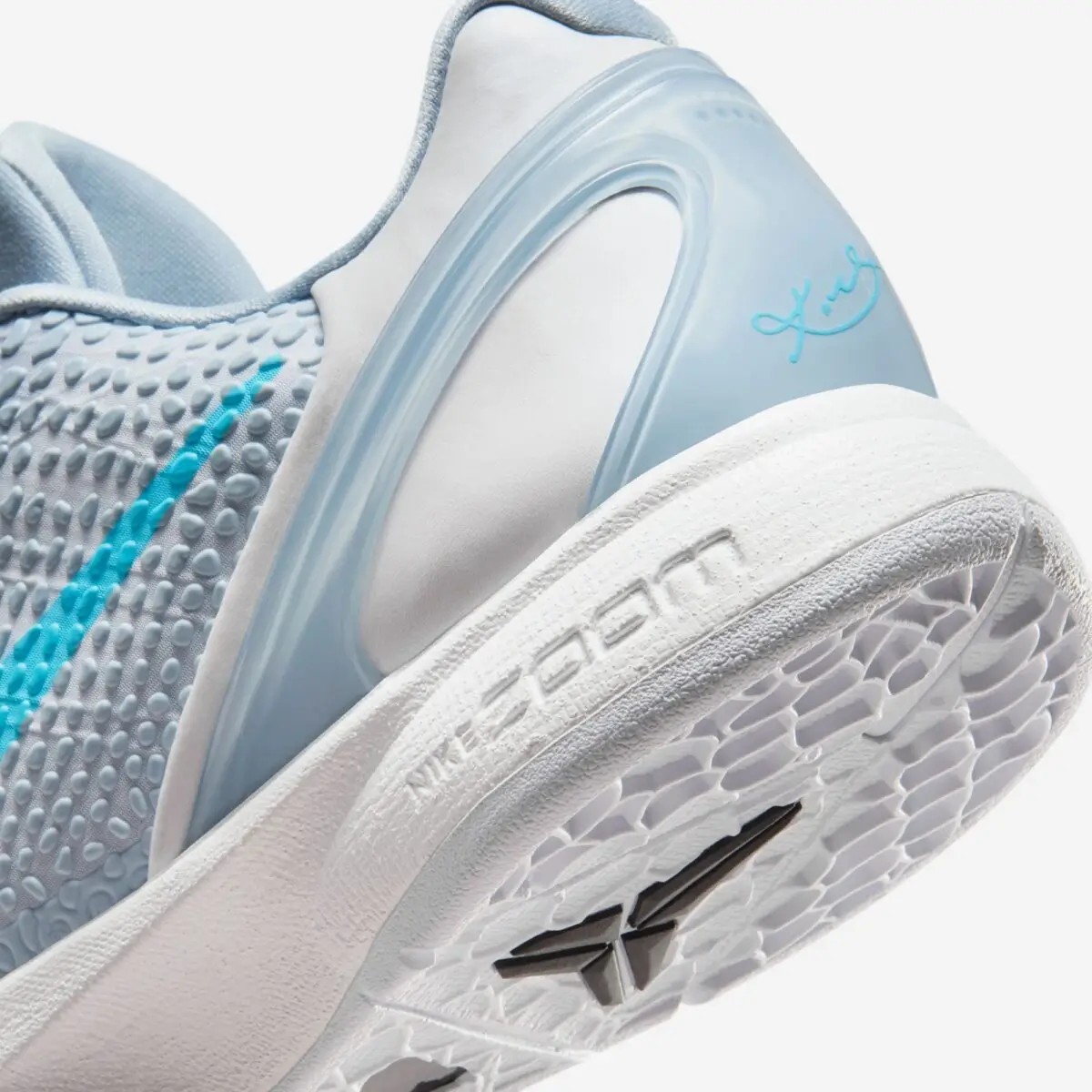 The sneaker arrives in a colour palette evocative of Clark’s calm precision and icy resolve: Light Armory Blue dominates the snakeskin-textured upper, supported by Baltic Blue accents on the Swoosh and Kobe shield logo. According to the official Nike launch details, “Light Armory Blue cloaks the snakeskin-textured upper while cool Baltic Blue accents highlight the branding.” The snakeskin pattern pays homage to the original Kobe 6 — a silhouette first introduced in Bryant’s 2010-11 season — whose ‘Black Mamba’ nickname and codified references to the serpent motif became iconic. By re-applying that pattern in this new context, the shoe nods to continuity and adaptation.