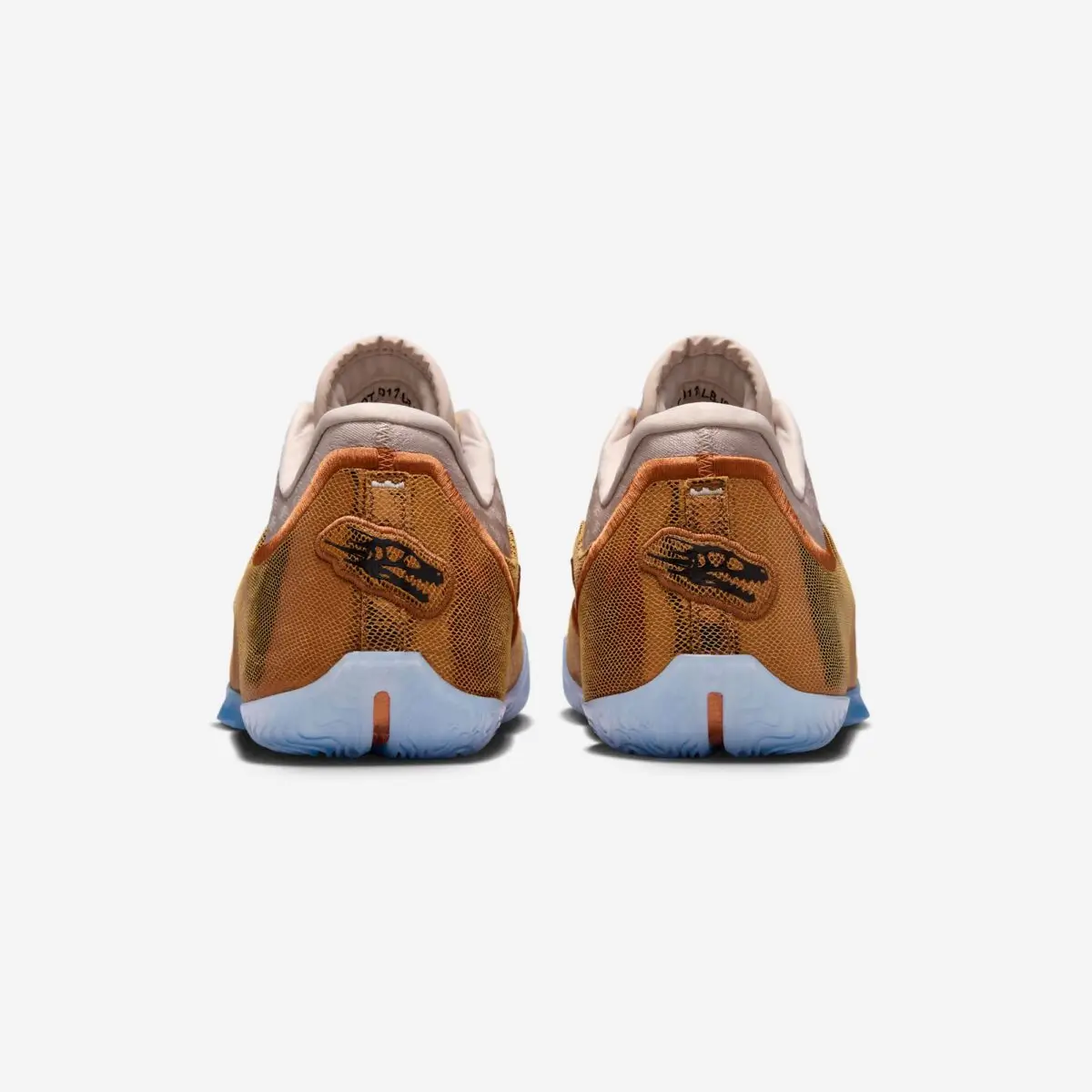 The aesthetic language of the Nike LeBron 23 “LeBronto” subtly references Toronto while maintaining the regal tone associated with LeBron’s identity as the “King.” The upper combines muted beige suede with shimmering amber mesh overlays, creating a layered appearance that shifts in tone under different lighting conditions.