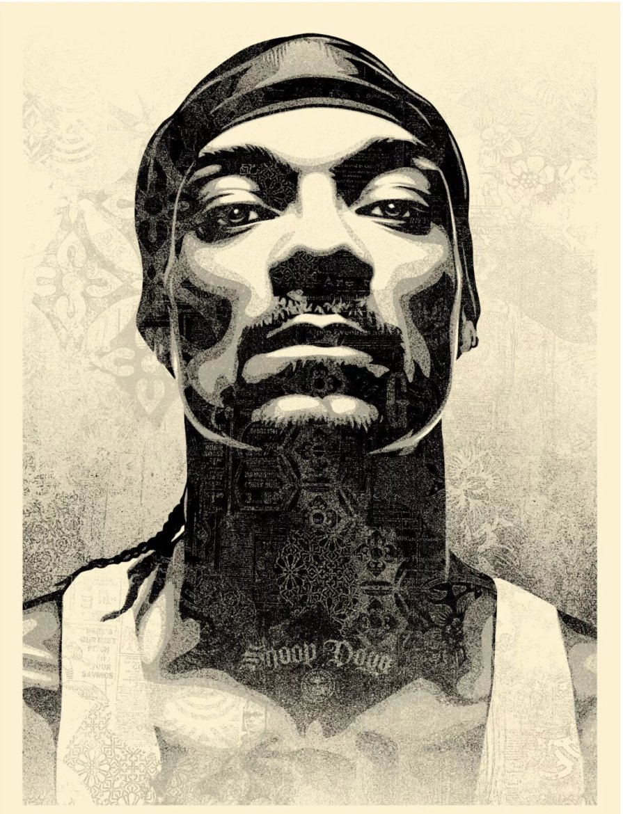 In the canon of visual art, who gets framed matters. For centuries, Western portraiture served only the powerful—the monarch, the pope, the tycoon. Fairey, who has long disrupted this hierarchy, uses Snoop D-O Double G to further the decolonization of the portrait genre.