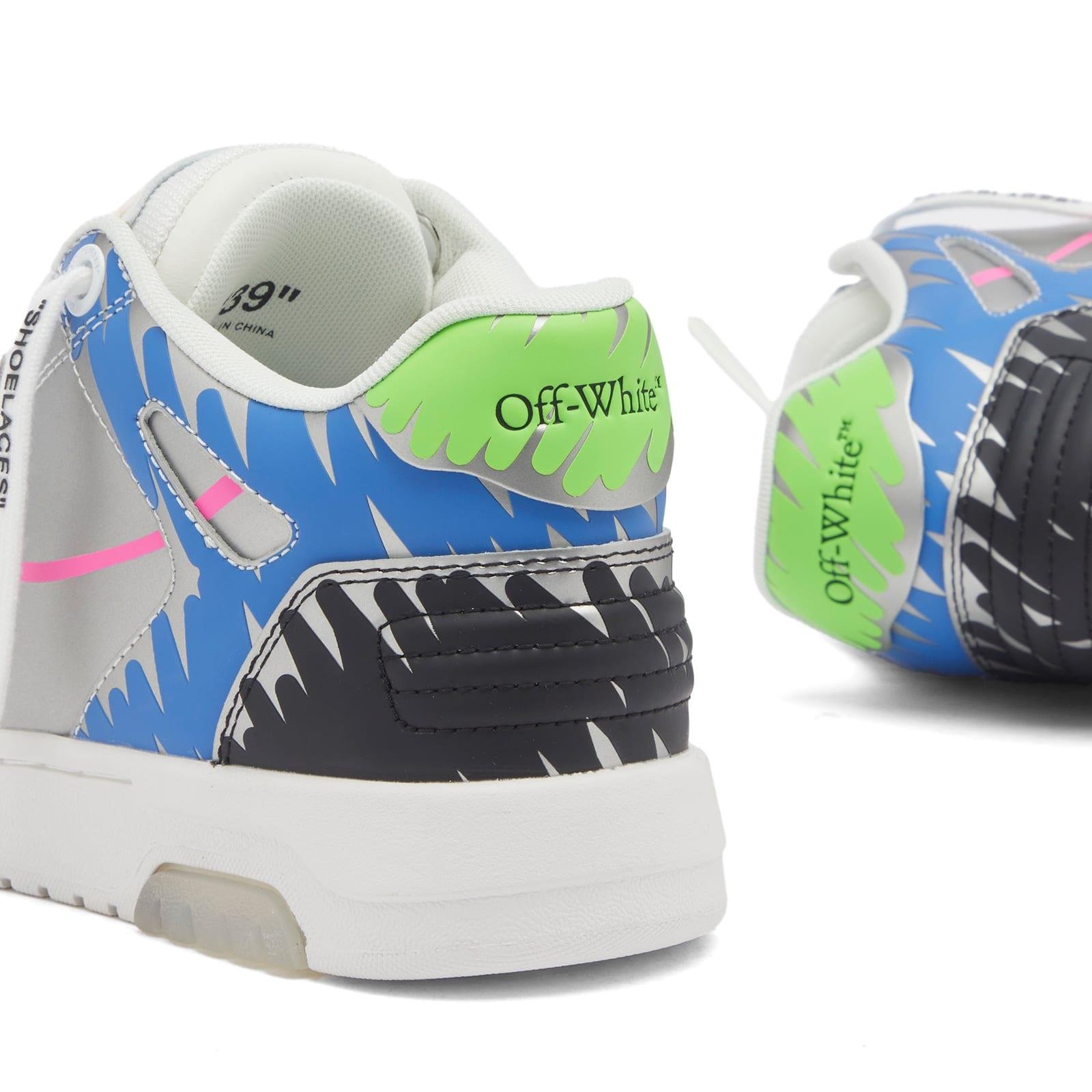 The Off-White Women’s Blue Off-X Bstroy Out Of Office sneakers showcase a distinctive and unconventional design. The colorway features a bold yet elegant combination of shades of blue, accented with signature Off-White details. The upper part of the sneakers is made from premium materials, blending smooth leather and synthetic overlays to achieve a textured, layered look. The iconic Off-White logo and cross-arrow motifs are prominently featured, giving the sneakers an unmistakable identity.