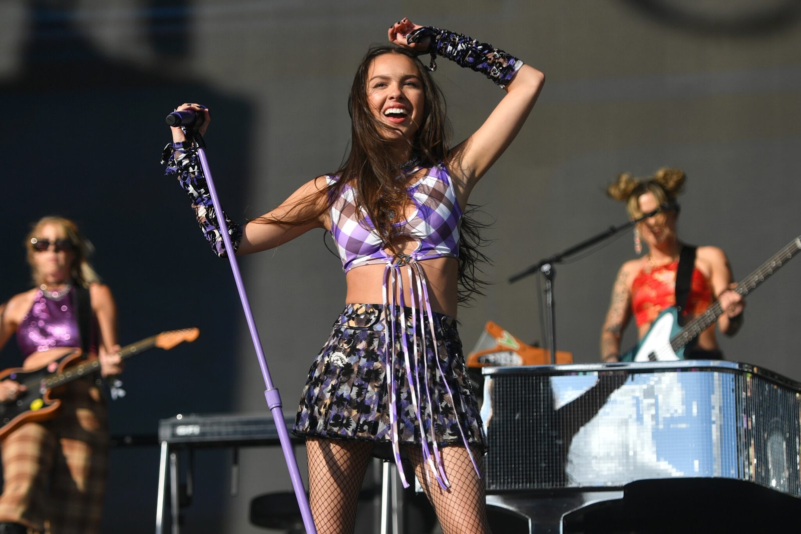 Her aesthetic choices nod to riot grrrl sensibilities, echoing the attitude of trailblazers like Kathleen Hanna and Courtney Love. But there’s also a wink to Disney sparkle, an acknowledgment of her own pop star origin story. Rodrigo understands the power of visuals in pop — every outfit, every mic color, every hair flip becomes a stitch in the tapestry of her narrative.