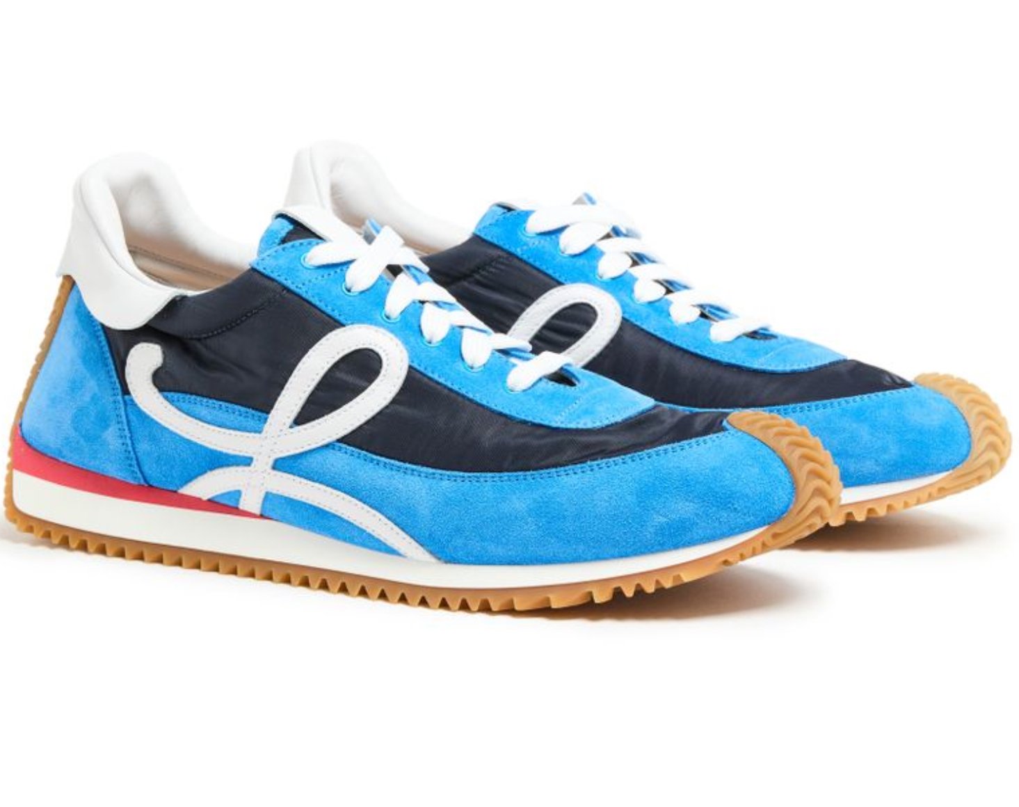 Materials are paramount. A typical Flow Runner sees a combination of nylon, calfskin leather, and suede, creating a tiered topography on the upper. Nylon evokes the utilitarian past of runners; the leather and suede introduce depth, friction, and touch. In certain limited editions—especially from seasonal releases—textured canvas and printed jacquard reinterpret the surface entirely, turning the sneaker into an extension of LOEWE’s ready-to-wear narratives.