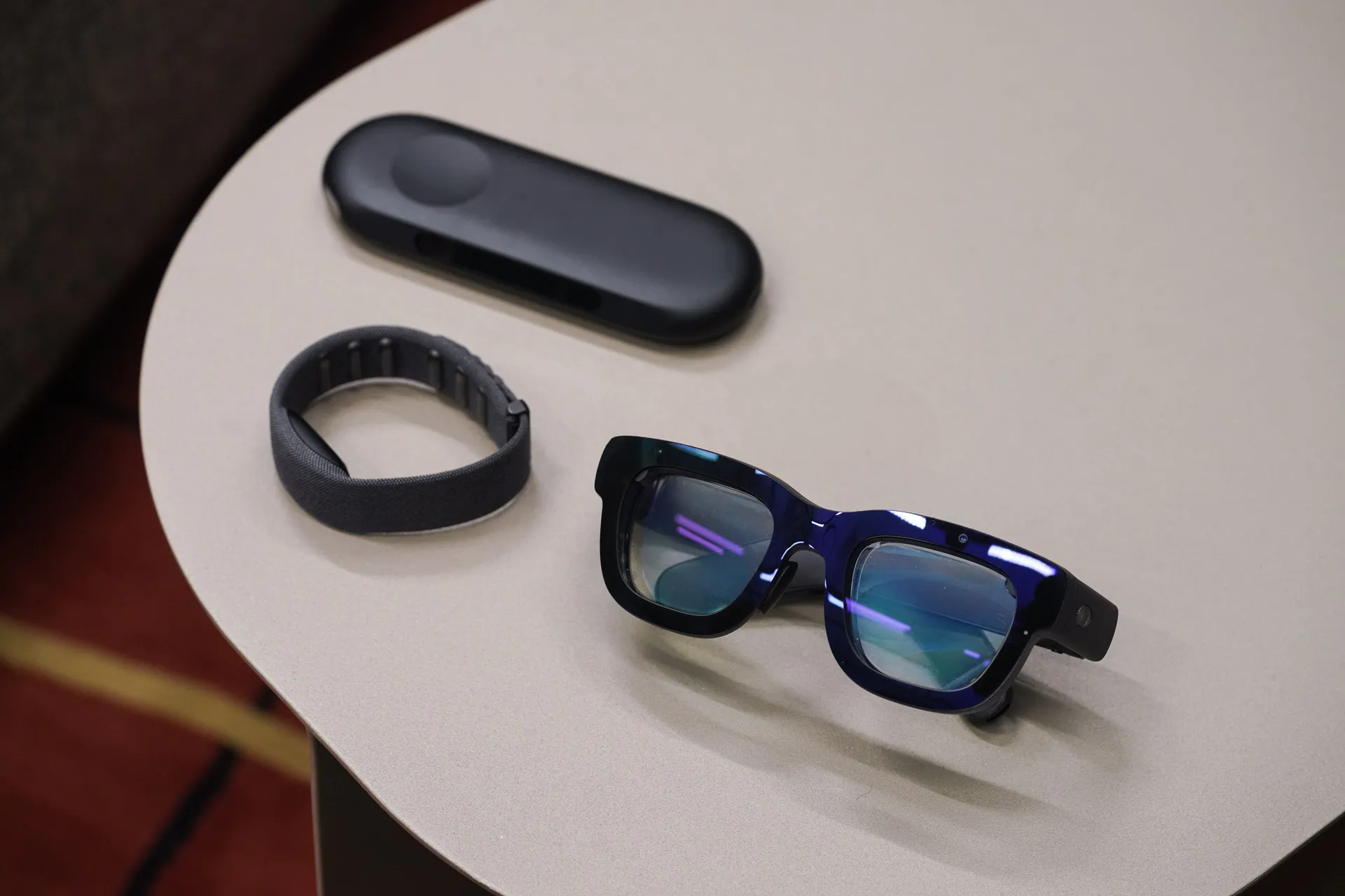 Slipping the glasses over my eyes, I am immediately struck by how sleek and futuristic they feel. They’re lighter than I expected, with the design reminiscent of something you’d see in a sci-fi film. As the lenses power on, they come to life with a swirl of blue, lighting up the space before me in a way that suggests this is no ordinary pair of glasses. These are a window into another reality—one layered with digital elements that promise to revolutionize how we interact with the world.