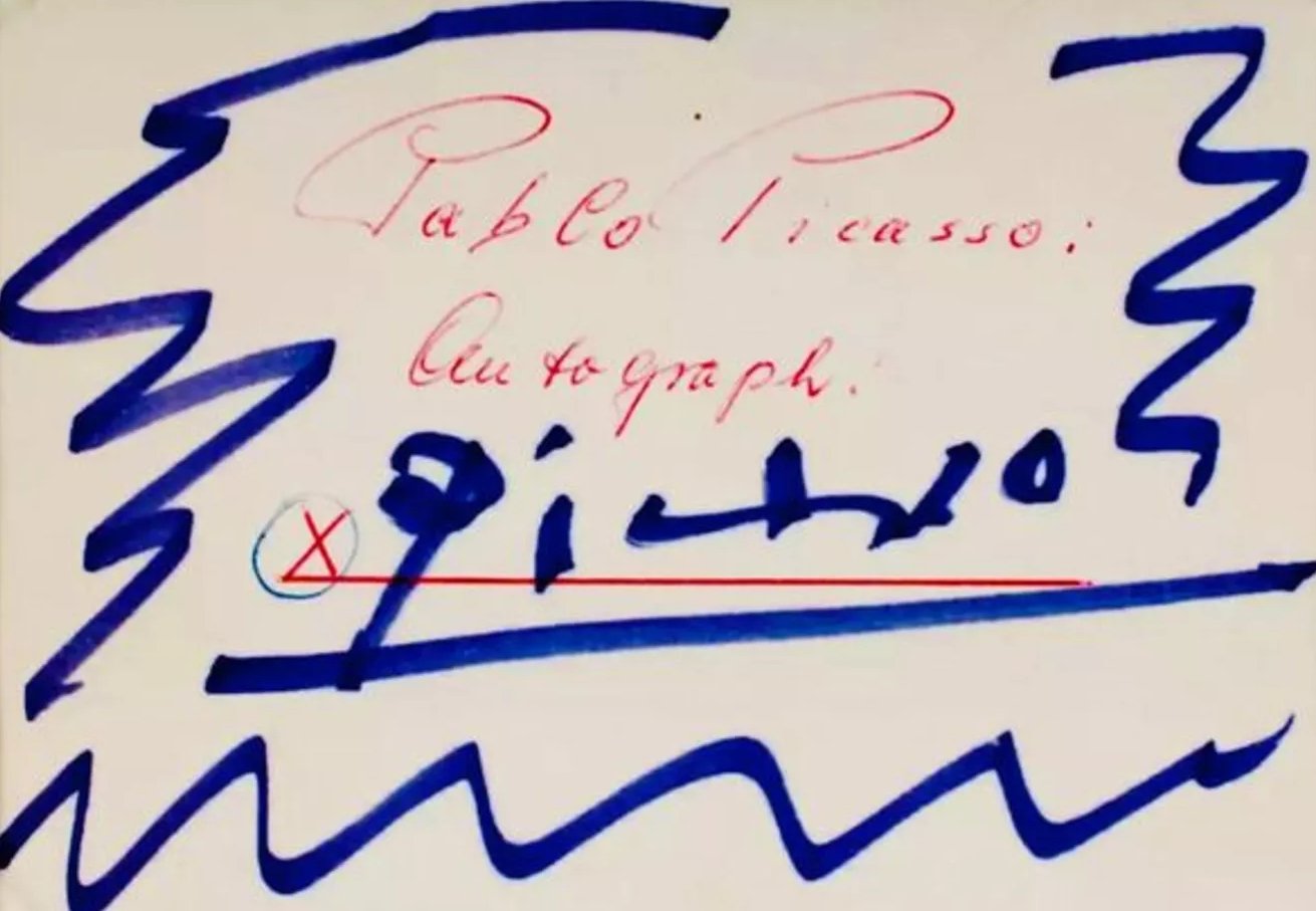 The “Auto Doodle” exemplifies Picasso’s ability to capture the essence of a subject with a few deft strokes. This economy of line, which became more pronounced in his later years, was a skill that Picasso honed throughout his career. His ability to convey so much with so little is what sets him apart as a master of form and expression. In this doodle, the fluidity and motion of the lines seem to suggest a figure, though the identity and nature of that figure remain deliberately ambiguous. It is through this ambiguity that the viewer is invited to engage with the work on a deeper level, to interpret and project their own meanings onto the abstract form.