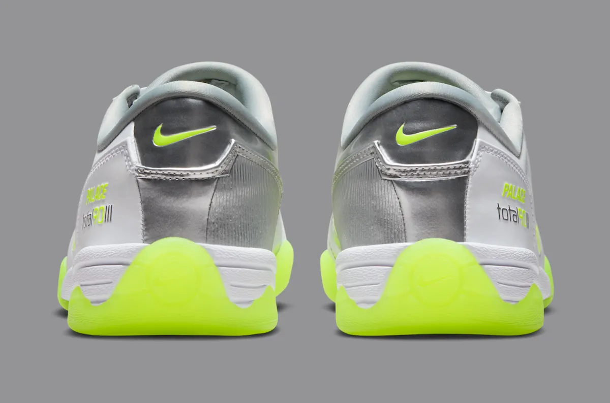 The shoe will be released globally on October 31, 2025 via Palace’s official channels and Nike.com, with Asia following shortly after. The official SKU—IM1381-100—corresponds to the White/Volt/Metallic Silver colorway, priced around $115 USD. Palace’s drop will also include a small apparel capsule featuring retro football jerseys, training jackets, and sporty tracksuits that echo the Total 90’s early-2000s roots.