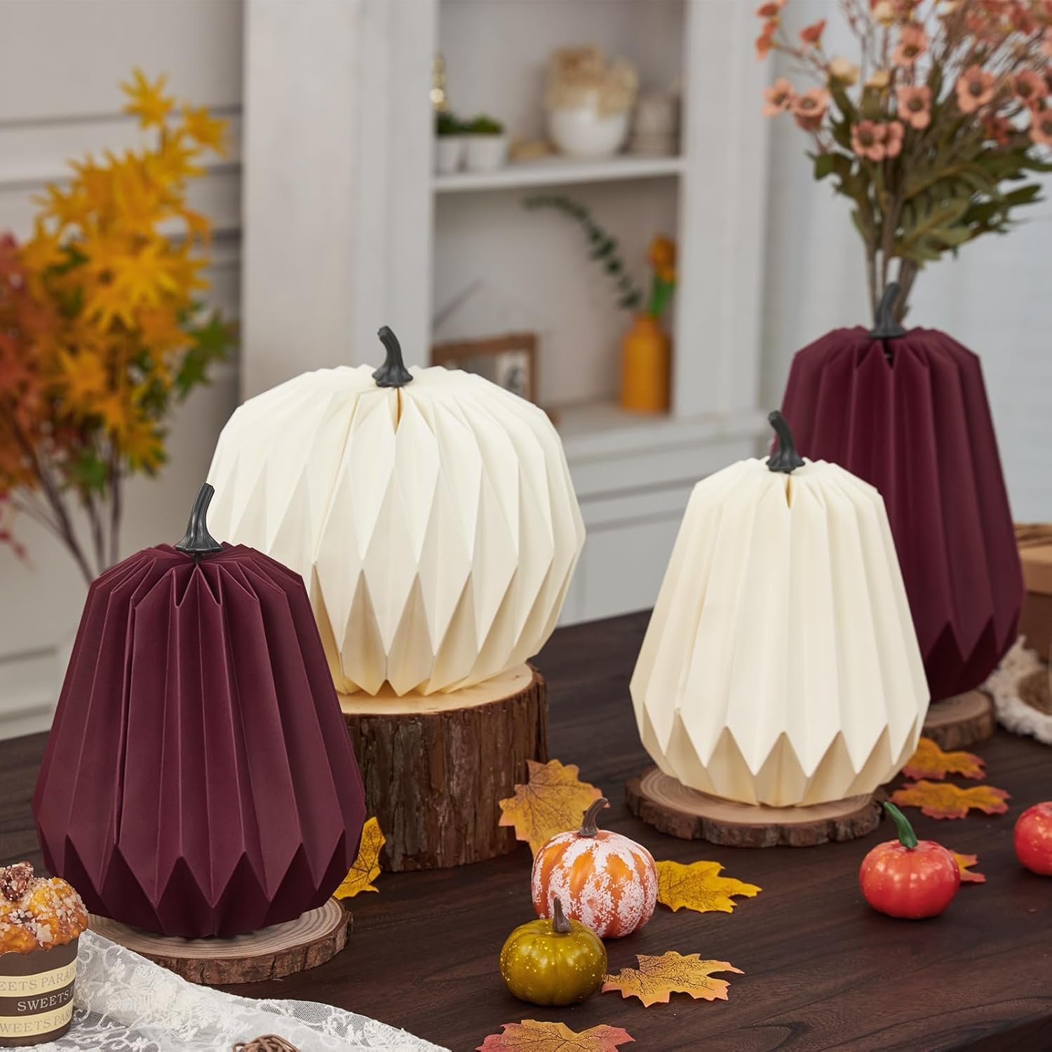 The 3D honeycomb design elevates these paper pumpkins beyond simple cutouts. Inspired by origami and accordion-fold techniques, honeycomb patterns create dimension and texture, transforming flat paper into sculptural art pieces. Whether in deep burgundy or creamy ivory, these pumpkins resemble geometric sculptures that feel both minimalist and festive.