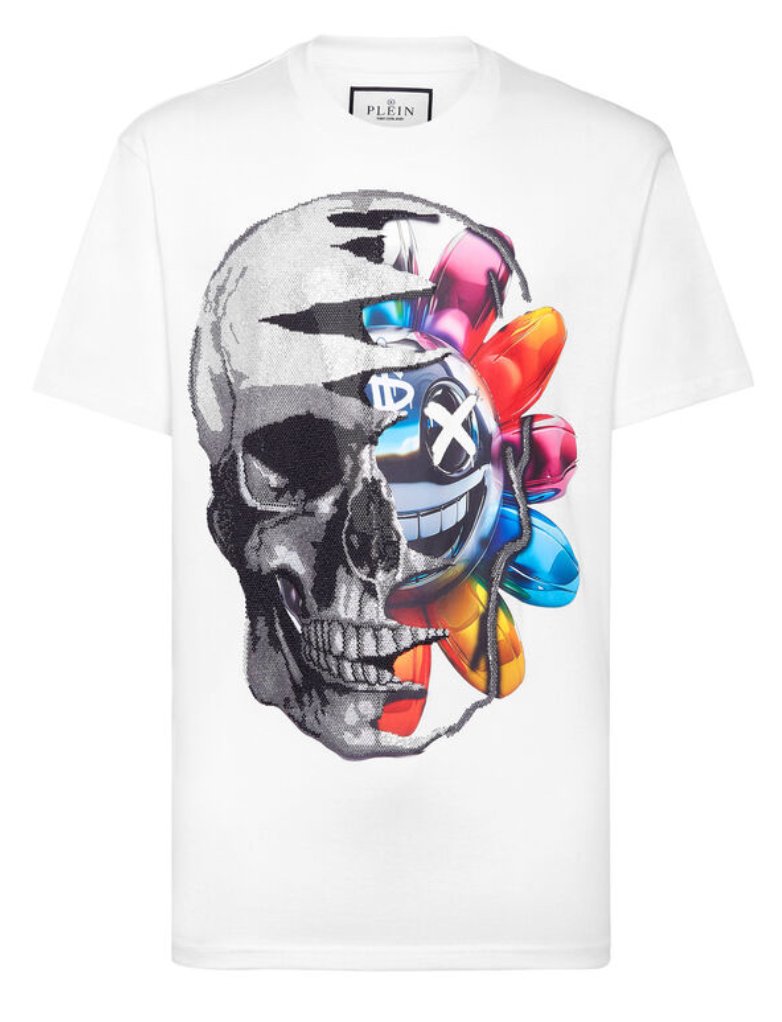 The code SAEC-MTK7769-PJY002N_01, while ostensibly a technical detail, situates the garment within the strict taxonomy of haute design—possibly belonging to a house like Philipp Plein, where opulence often intersects with subversive humor. Yet here, the humor is quiet. No rhinestones, no explosive graphics. Just cotton, construction, and a semiotic curve that speaks volumes.