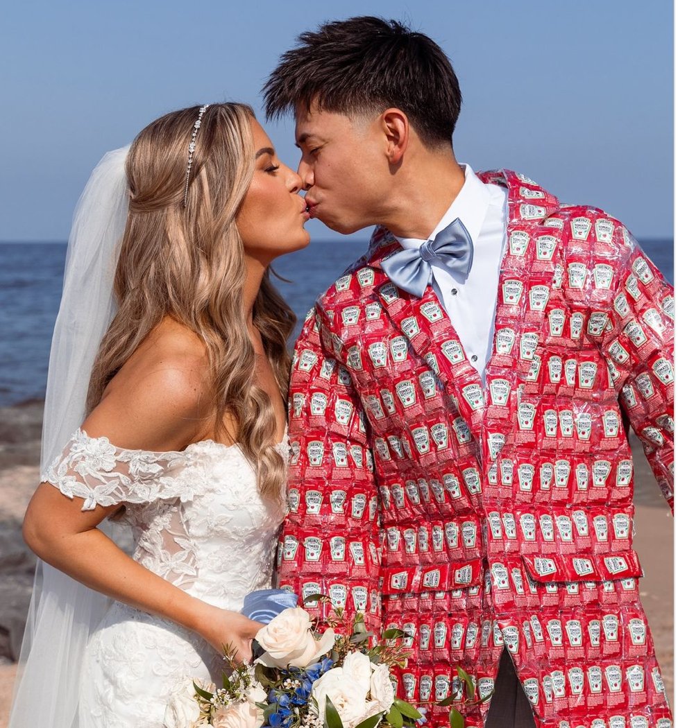 Weddings are traditionally filled with sentimental and symbolic traditions, with brides often adhering to the classic rhyme, “Something old, something new, something borrowed, something blue.” But for one groom, the focus was on something a little more unconventional—something red. At his recent wedding, Heinz Le, a groom with a first name that matches the iconic condiment brand, celebrated his nuptials in a way that was both unique and incredibly personal: he wore a Heinz ketchup-inspired jacket.