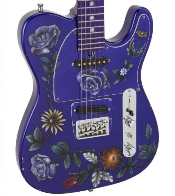 Roger Sadowsky, a renowned luthier respected for his precision and artistry, was the craftsman behind several of Prince’s custom guitars. Among these, the purple floral design stood out for its uniqueness and frequent stage presence. Prince, a connoisseur of bold and unconventional styles, found the perfect extension of his persona in this guitar, which complemented his flamboyant costumes and theatrical performances.