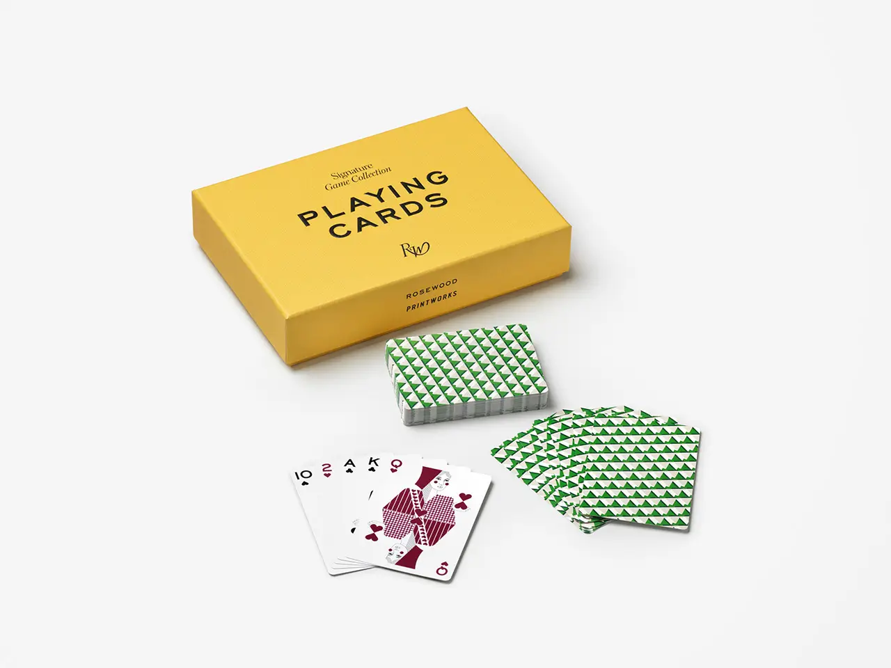 The PRINTWORKS × Rosewood playing cards reinterpret this timeless tool through refined materials and graphic design. The packaging is elegant yet understated, allowing the deck to sit comfortably among books, design objects, and art pieces.