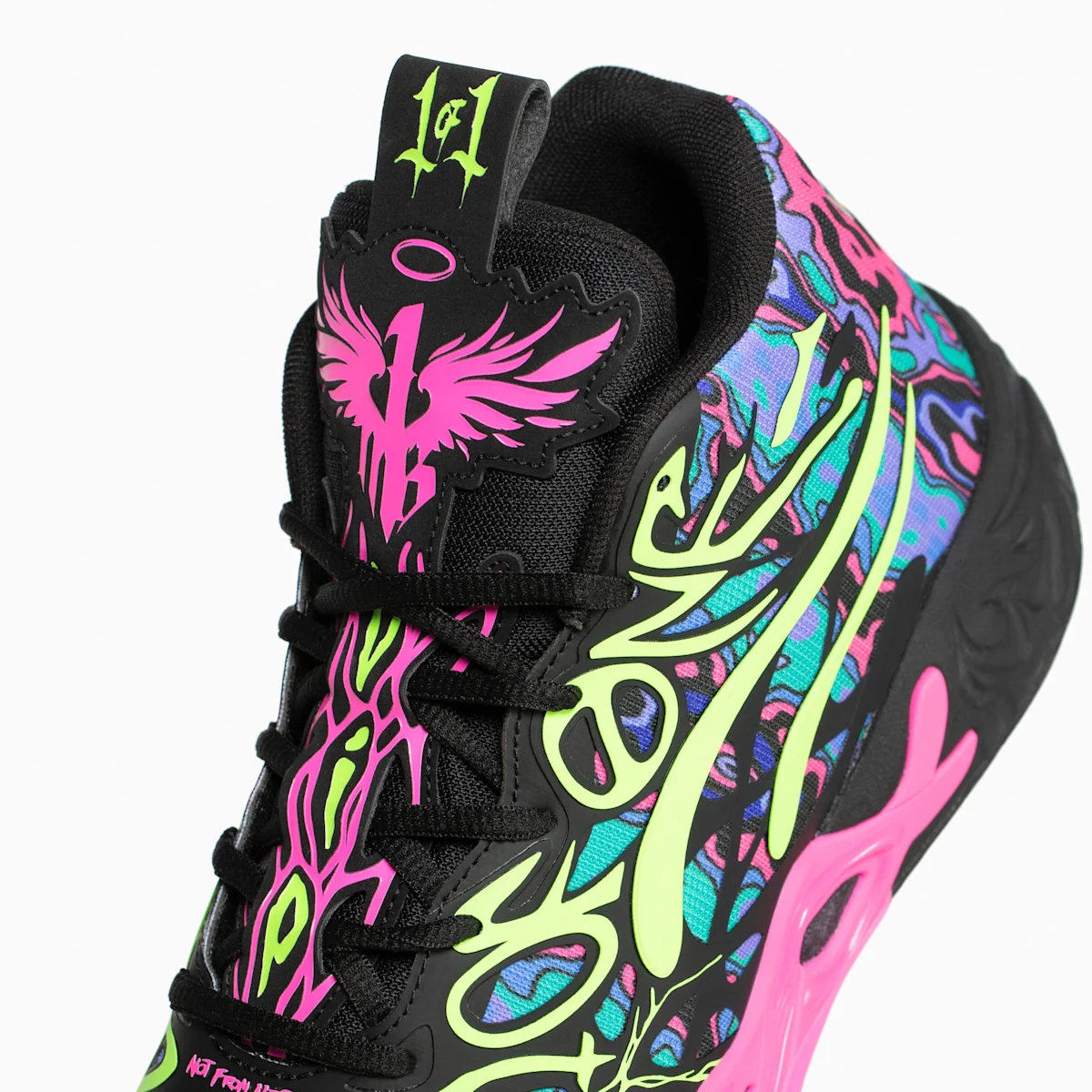 LaMelo Ball’s latest sneaker, the PUMA MB.04 “HEEM,” is a vibrant addition to the PUMA Hoops lineup, designed for those who love to make bold statements on and off the court. With its neon colorway featuring bright pink, blue, purple, green, and yellow accents, the MB.04 “HEEM” reflects Ball’s dynamic personality and fearless approach to basketball.