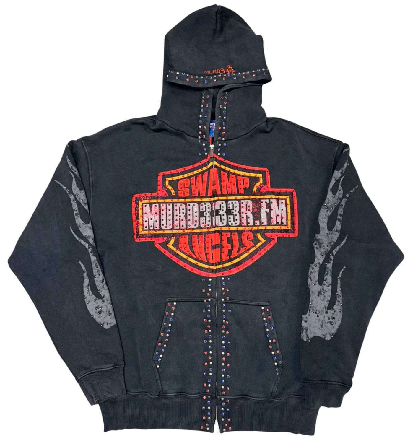 The MURD333R.FM ‘CHOP333R’ Black Zip Up Hoodie stands as a compelling piece of streetwear that merges dark aesthetics with contemporary fashion. This hoodie isn’t just a clothing item; it acts as a cultural artifact representing the unique intersection of underground street style and alternative music influences, while also making bold statements about individuality, rebellion, and the evolving landscape of youth culture.