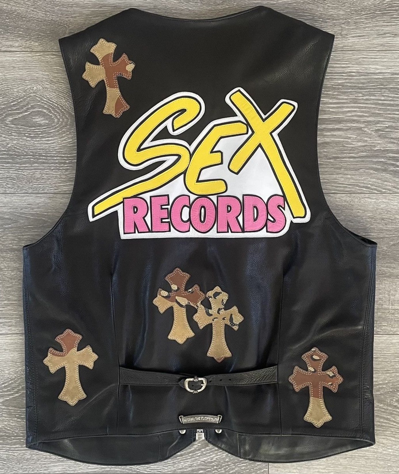 The Chrome Hearts Sex Records Vest can be seen as a form of social commentary, using fashion as a medium to challenge societal norms and provoke thought. In a world where luxury fashion is often associated with exclusivity and elitism, the vest subverts these expectations by incorporating elements of punk and streetwear, which have traditionally been seen as anti-establishment. By doing so, Chrome Hearts blurs the lines between high fashion and subculture, creating a garment that is both luxurious and rebellious.