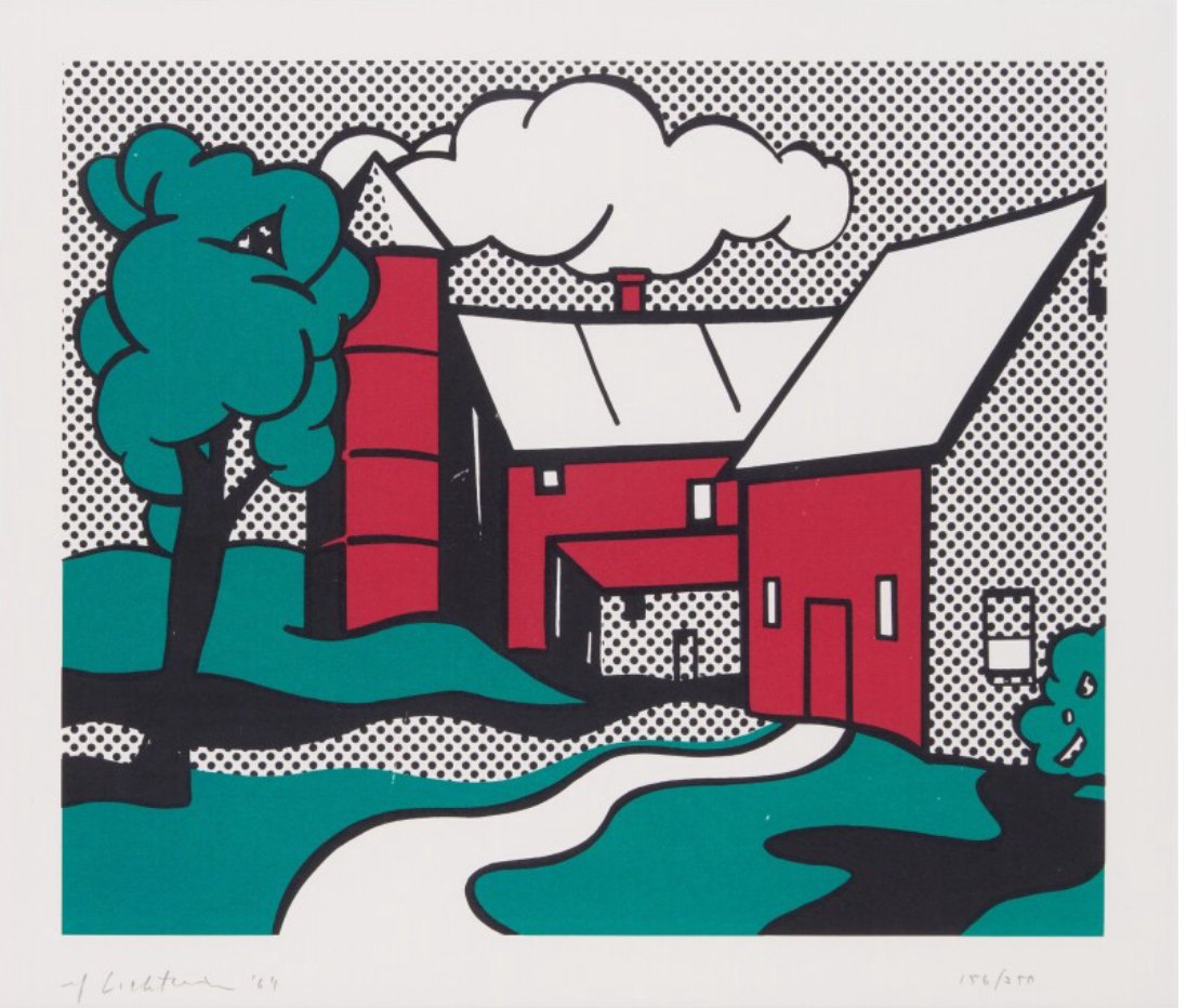 The barn in this series becomes an icon, almost emblematic of the American countryside, yet it’s stripped of its context and transformed into a symbol. The piece is not just a representation of a barn but an interrogation of form, color, and space, reflecting Lichtenstein’s fascination with the visual language of Americana through the lens of industrial production.