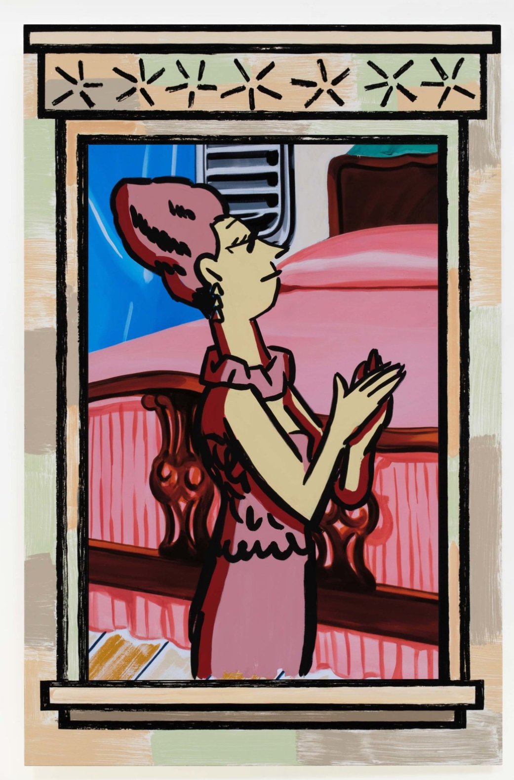 Salle is no stranger to the unstable identity of images, and Windows #4 continues his legacy of blending high and low, gesture and reproduction, seduction and critique. What appears at first to be a kitschy caricature—a stylized woman frozen mid-gesture, framed like a character in a television sitcom or a vintage comic—quickly reveals itself to be a dense layering of visual history, medium, and meta-awareness.