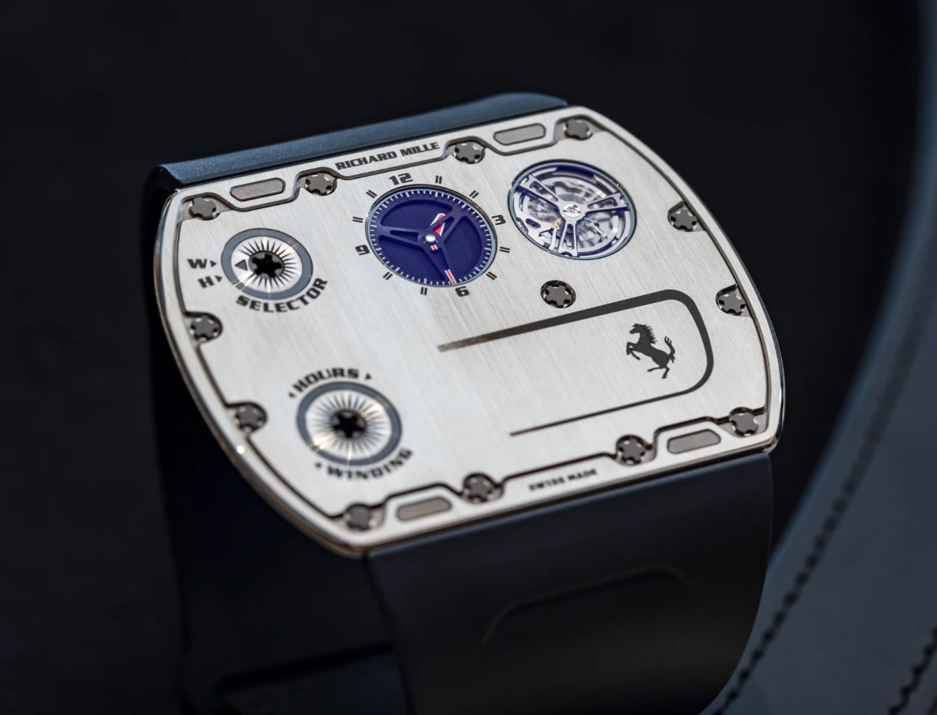 Every element of the RM UP-01’s design is a reflection of Richard Mille’s commitment to precision and detail. The watch features a refined, skeletonized dial that showcases the intricate inner workings of the movement. This transparent design not only enhances the watch’s visual appeal but also underscores the brand’s dedication to transparency and authenticity in watchmaking.