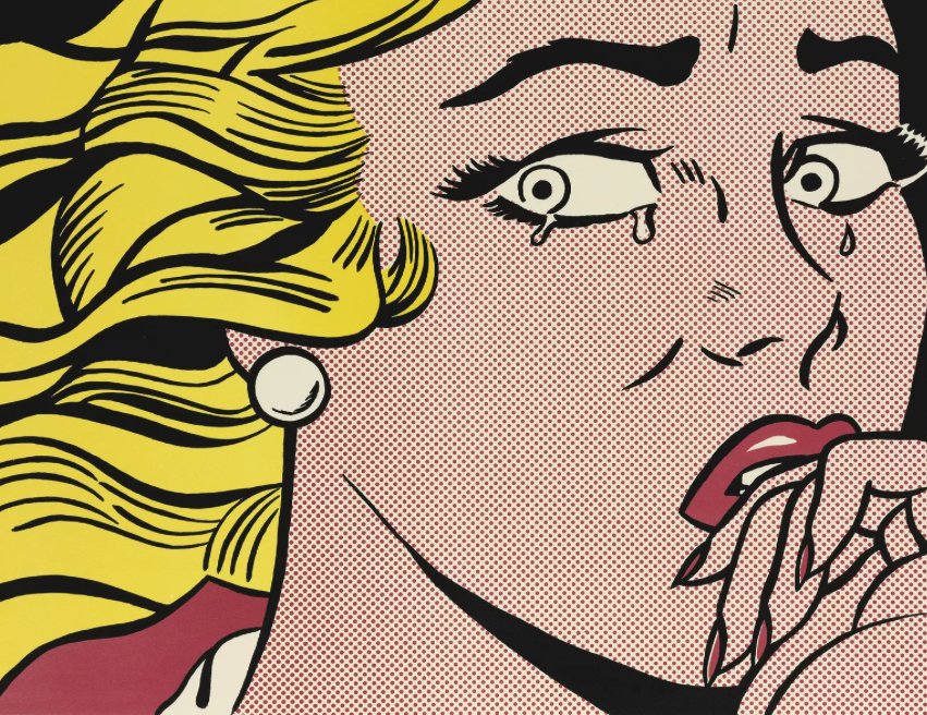Lichtenstein’s signature style—flat, graphic compositions with dotted shading and thick outlines—was painstakingly executed to appear machine-made. He mimicked the Ben-Day dot technique, commonly used in comic books and newspapers, but reproduced it with brushes, stencils, and an extraordinary attention to detail. His technique often tricked viewers into assuming the works were printed, not painted.