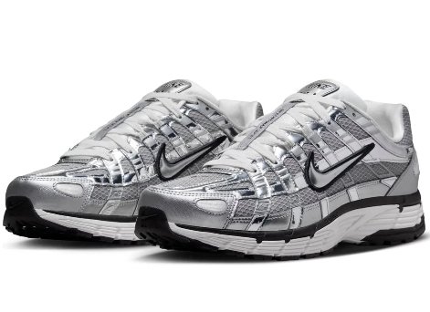 The Nike P-6000 Metallic Silver is a modern homage to early 2000s running footwear, blending retro aesthetics with contemporary comfort. Released on October 6, 2023, this model draws inspiration from the Air Pegasus 2006, featuring a breathable mesh upper with chrome synthetic leather overlays that create a distinctive grid-like pattern.