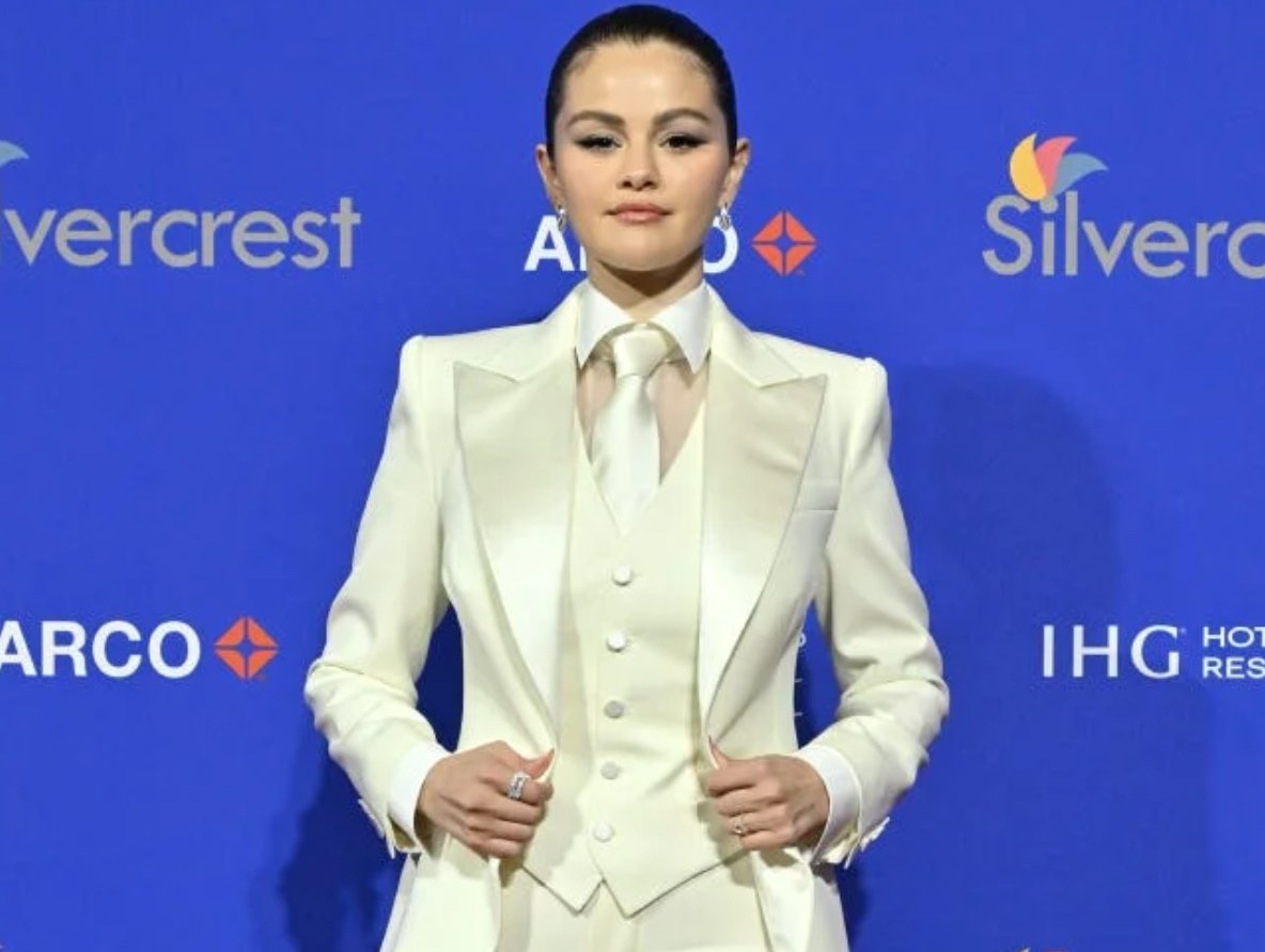 Selena Gomez’s white tuxedo is a testament to her evolving style. The ensemble featured sharp tailoring, a crisp, structured blazer, and high-waisted trousers that created a striking silhouette. Paired with minimal accessories and understated makeup, the look emphasized elegance without overpowering her natural beauty. The clean lines of the tuxedo, coupled with its pristine white hue, maintained a bridal essence while stepping away from the traditional gown.