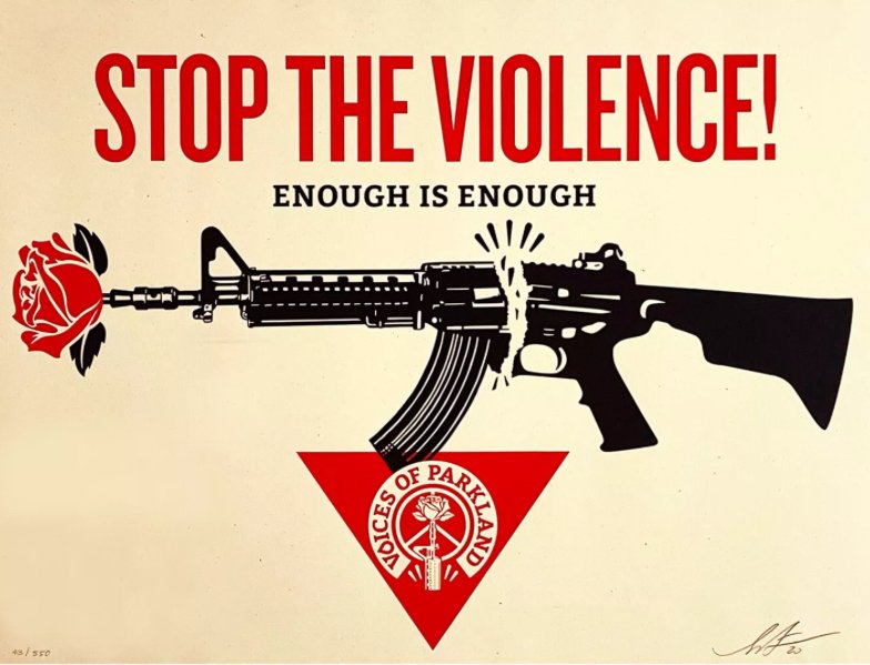 Fairey’s prints have always oscillated between art and activism, but Parkland Voices puts that tension into sharp focus. In 2020, partial proceeds from sales were donated to gun reform organizations and community initiatives, blurring the line between commerce and cause. This was art that didn’t just comment on injustice—it funded its opposition.