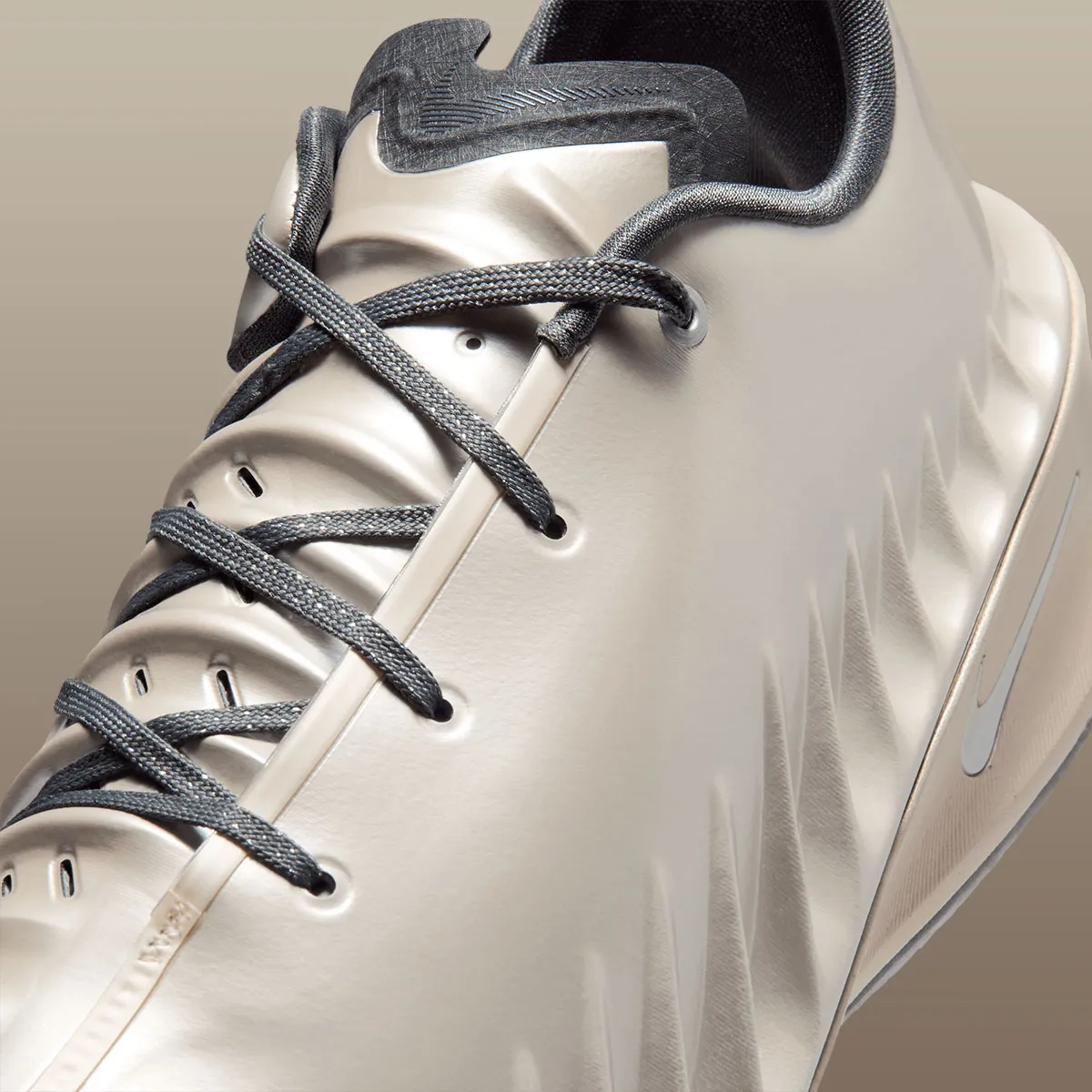 Up top, the construction sharpens. An exoskeleton-casted upper, anchored by a 3D-molded collar and sculpted tongue, creates a containment system that feels less worn than integrated. The fit sits low, precise, almost anatomical—aligned with players who rely on pace variance and directional ambiguity. Beneath it, a generative traction pattern maps movement rather than prescribing it, gripping through abrupt deceleration and lateral fragmentation.