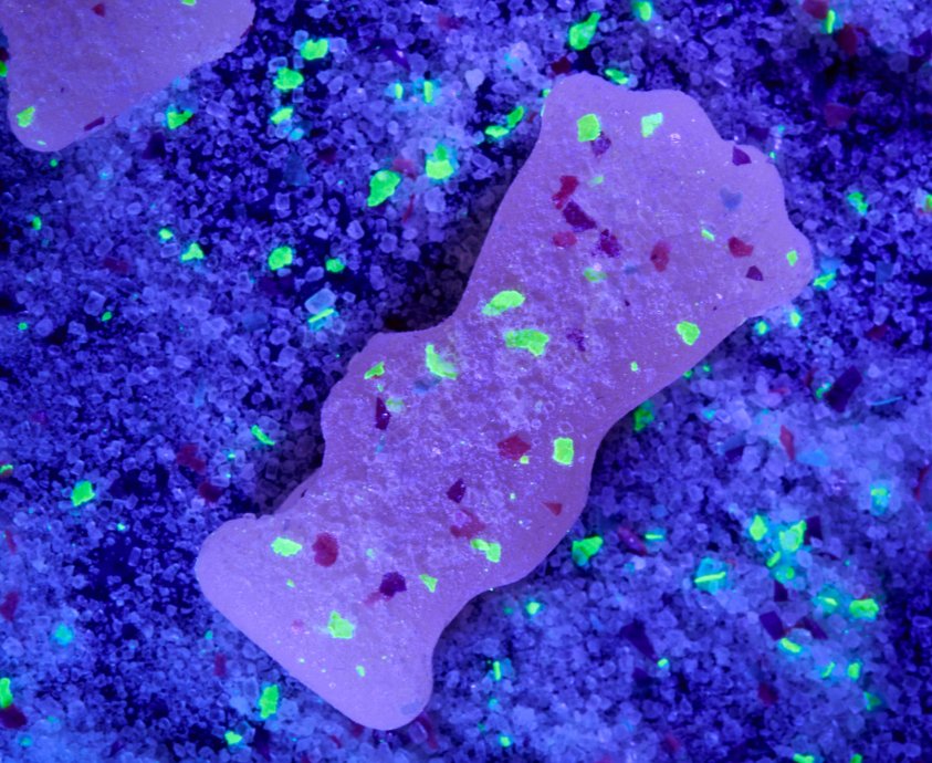 • Turmeric extract confetti: Unlike artificial glowing agents, this natural ingredient provides the blacklight-reactive effect without affecting the candy’s taste.