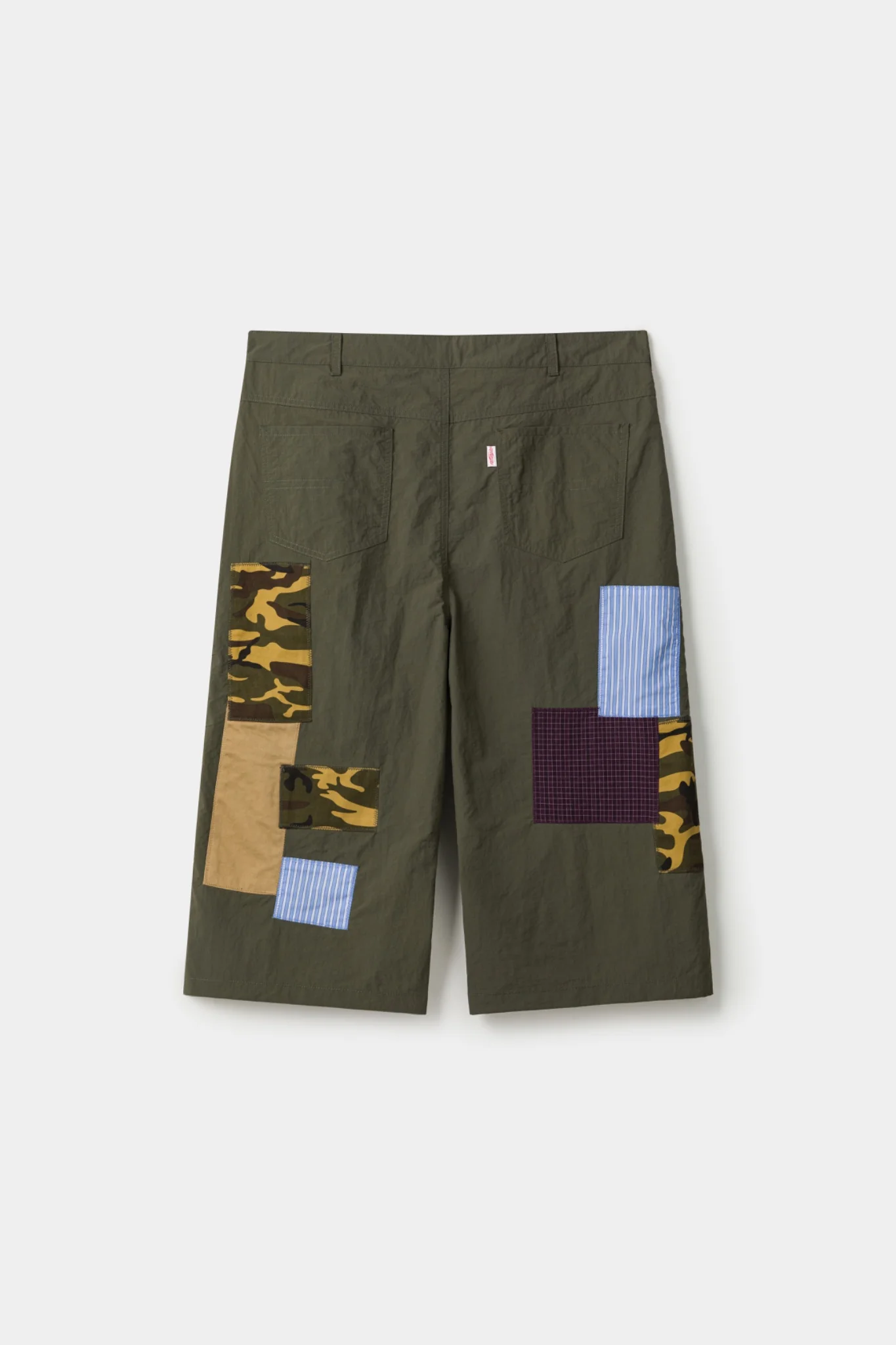 It would be more chaotic, certainly—but also more honest in its fragmentation. A garment like this would reject the idea of a “main” fabric entirely, positioning itself as a pure composition of parts. It would feel less like a pair of shorts and more like a wearable collage.