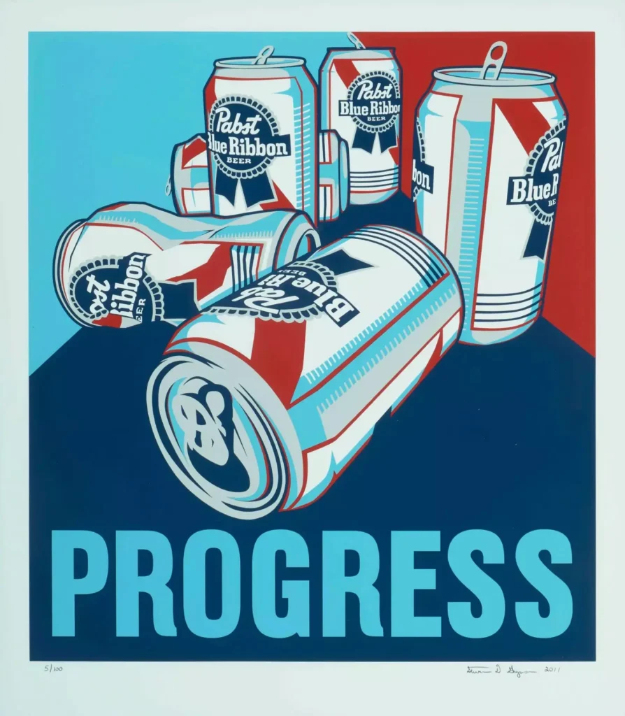 In the early years of the 2010s—an era marked by both economic recalibration and cultural reinvention—artists across disciplines began to reengage with optimism as a visual language. Not naïve optimism, but one that was deliberate, constructed, and often quietly defiant. Within this context, Hope. Progress. (2011), a paired set of color serigraphs by Steven D. Gagnon, emerges as a succinct yet resonant articulation of that sentiment.