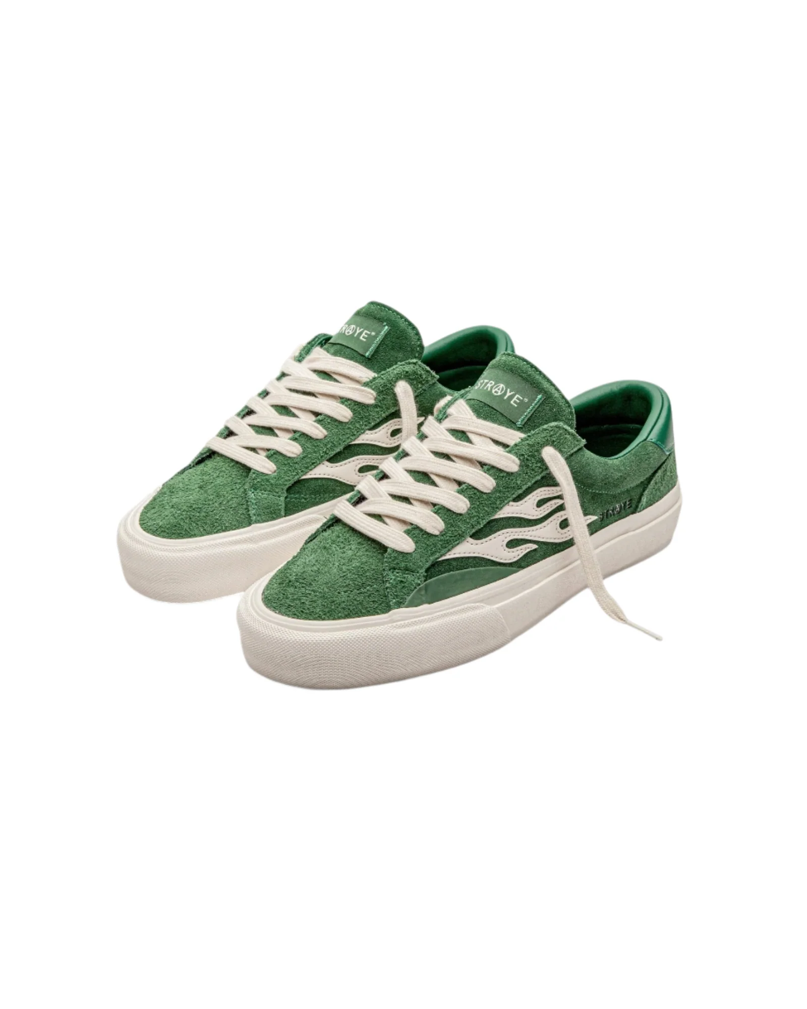 LOGAN – FOREST FLAME features a durable suede upper complemented by STRAYE’s signature AcidDrop removable insoles. These insoles, celebrated for their comfort and rebound, reduce foot fatigue, allowing for longer sessions and higher impact tricks. The low-profile vulcanized sole offers superb board feel — crucial for technical flicks and slides.