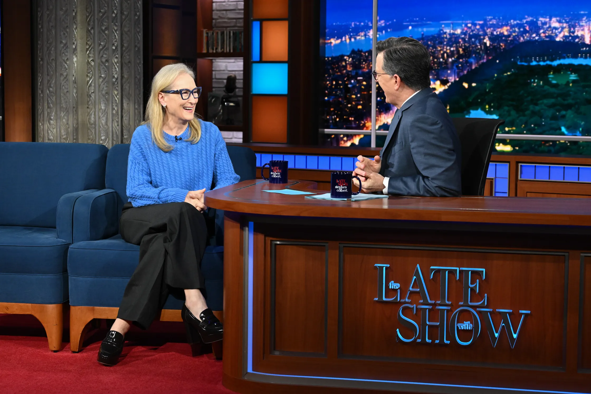 When Meryl Streep stepped onto The Late Show with Stephen Colbert, the camera didn’t linger on her face first. It went straight to the sweater. A soft, rich cerulean cable-knit in cashmere—custom-made by J.Crew, styled by Micaela Erlanger, and worn with the quiet confidence only Streep can summon. In that moment, the internet didn’t just do a double-take. It exhaled. Because this wasn’t just fashion. It was memory. It was myth. It was The Devil Wears Prada walking back into our lives—not through a sequel trailer, but through a single, deliberate stitch.