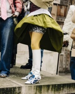 No street style look is complete without standout accessories. This season, chunky gold jewelry, oversized sunglasses, and sculptural handbags were everywhere. Statement boots—ranging from knee-high patent leather to rugged platform soles—were also in full force. Playful pops of color in accessories helped elevate otherwise neutral outfits, proving that small details can make a big impact.