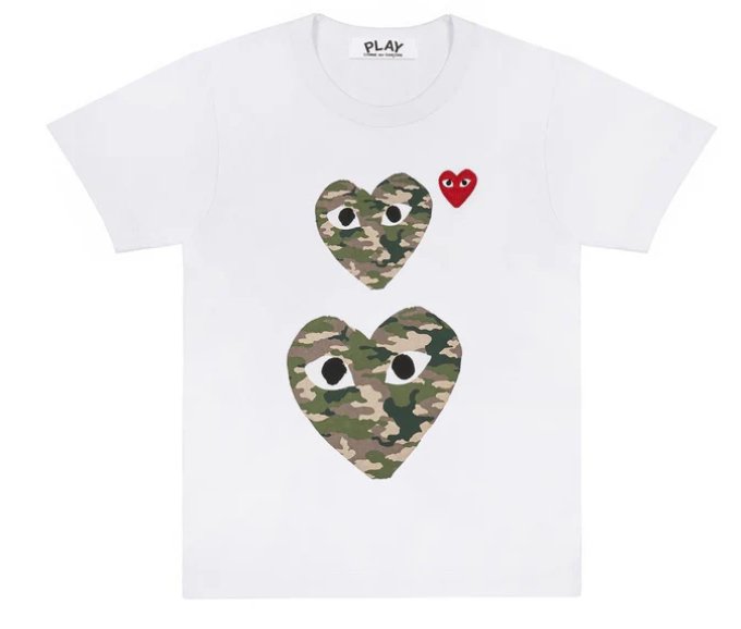 The camo double heart tee, like the rest of the PLAY line, thrives on recognizability. You know it when you see it. It’s graphic, but not loud. Premium, but not exclusive. It’s cool without trying hard.