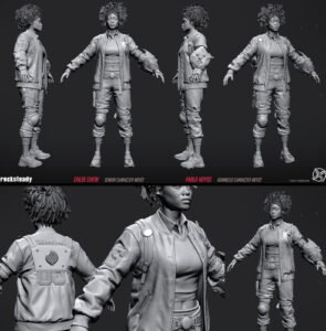 - Pablo Hoyos (Advanced Character Artist) built the rest of the outfit with masterful consistency. His eye for balance across character layers helped ground Zoe’s look in the world.