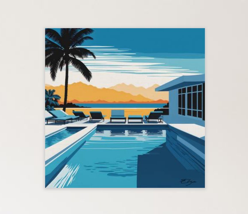 In Summer in California, Elena Zaharia has created not simply an image, but a condition. This is a canvas that breathes, that holds light like memory, and that asks nothing of the viewer except attentiveness. Its subject is not the grand vista, but the intimate sweep. Not spectacle, but resonance. Through her masterful use of acrylics, Zaharia has conjured not just a summer, but the deep, internal stillness it occasionally permits—the kind that emerges not from absence, but from being fully present in heat, time, and reflection.