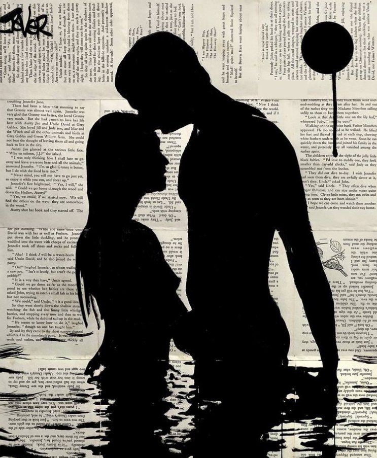 “Summer Love” by Loui Jover is an art piece that encapsulates the bittersweet and poignant nature of fleeting romance through Jover’s signature style. Known for his evocative ink drawings on vintage book pages, Jover captures moments infused with emotion, layered with the context of written words that form the backdrop. Each piece by Jover, including “Summer Love”, is not just an image but a story—an exploration of human connection and transience, which invites viewers to reflect on their personal experiences with love and longing.