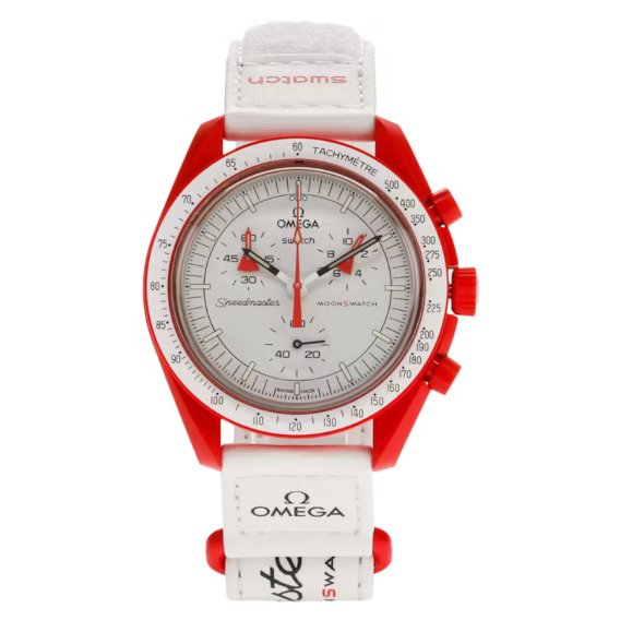 The Mission to Mars model is distinguished by its striking red and white color scheme, a clear homage to the Red Planet. The dial features two sub-dials designed to resemble the boosters of a rocket, adding a playful yet purposeful touch to the watch’s overall aesthetic. This attention to detail reflects Omega’s storied history in space exploration, while Swatch’s influence ensures the design remains vibrant and approachable.