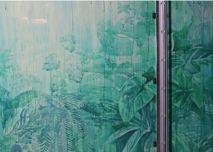 Visually, the piece mimics the layered density of a forest—one that has been recompiled in digital syntax. LED imagery might simulate chlorophyll processes, drone-filmed canopies, or microcellular animations. The painted surfaces resist traditional representation. They might show tangled roots, plastic leaves, or exploded views of plant structures. But they are intentionally fragmented—composite forms from both natural and machinic origins.