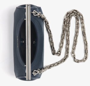 The detachable silver chain strap is as thoughtfully constructed as the body of the bag—offering versatility without compromising form. Whether slung across the body, worn on the shoulder, or gripped like a clutch, the bag responds organically to the wearer’s intent. That modularity is part of its core strength—it morphs to suit your fashion narrative, not the other way around.