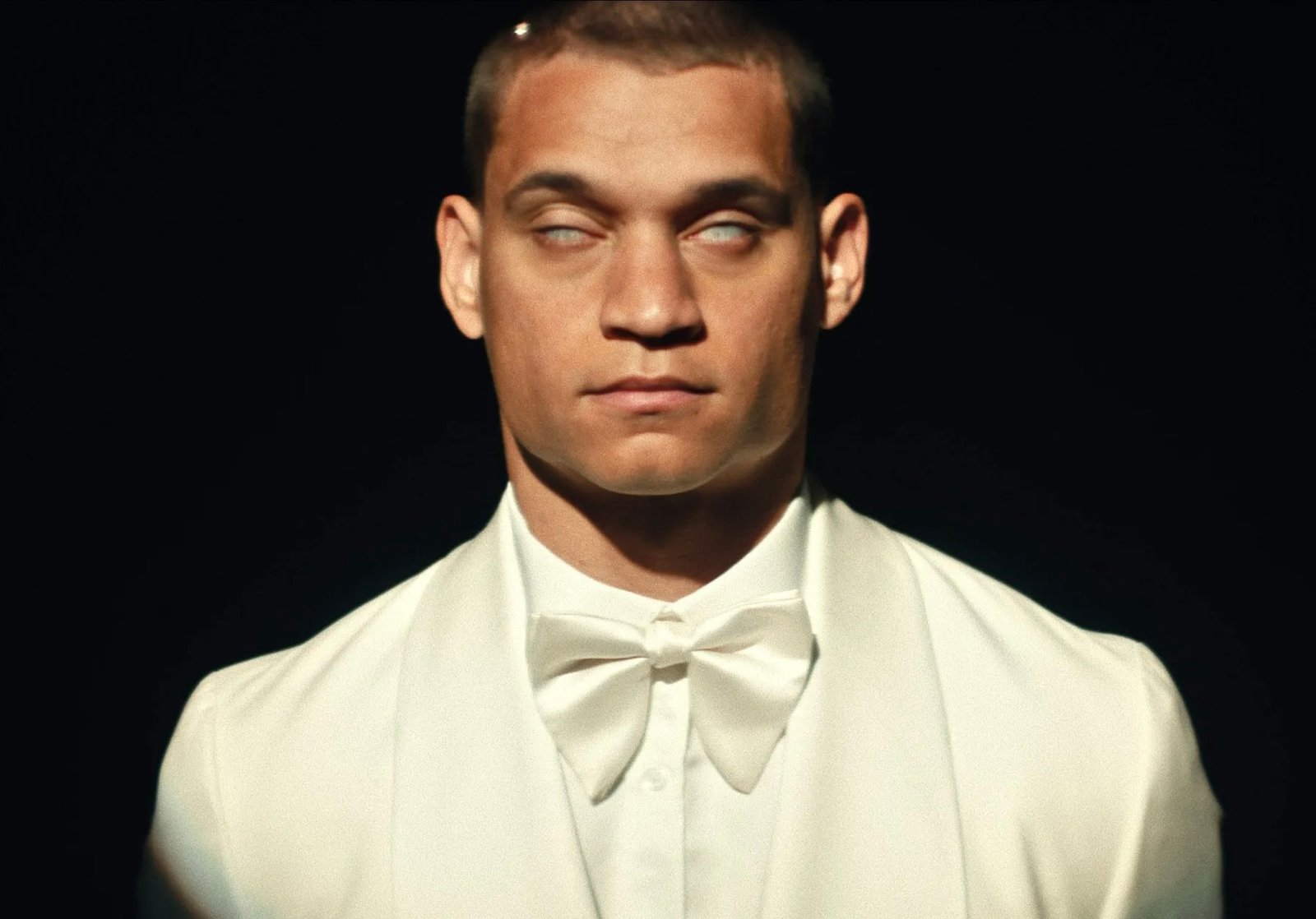 The white tuxedo moment—a surreal image of an athlete suspended between elegance and dread—exemplifies this tension. Here, physical perfection collides with vulnerability, and the image functions as both dream and nightmare.