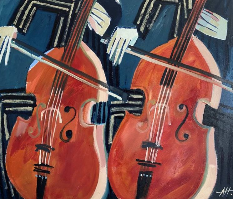 Anna Hymas continues to make significant contributions to contemporary art with her expressive and colorful works. “The Cello Players” stands as a notable example of her talent in capturing the essence of musical performance on canvas.
