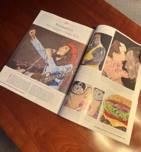 The inclusion of “The Cheeseburger Deluxe” in Tampa Bay Magazine’s September/October 2023 issue aligns Haghighi with a broader movement of artists using iconography to interrogate the visual language of consumption. In the spread titled “Matt-i-fest”, we see his creative mind applied to a range of subjects—from Bob Marley to Hulk Hogan to familial tenderness—and yet the burger holds its own in that eclectic company. It functions as a kind of silent protagonist, a food still life that speaks volumes.