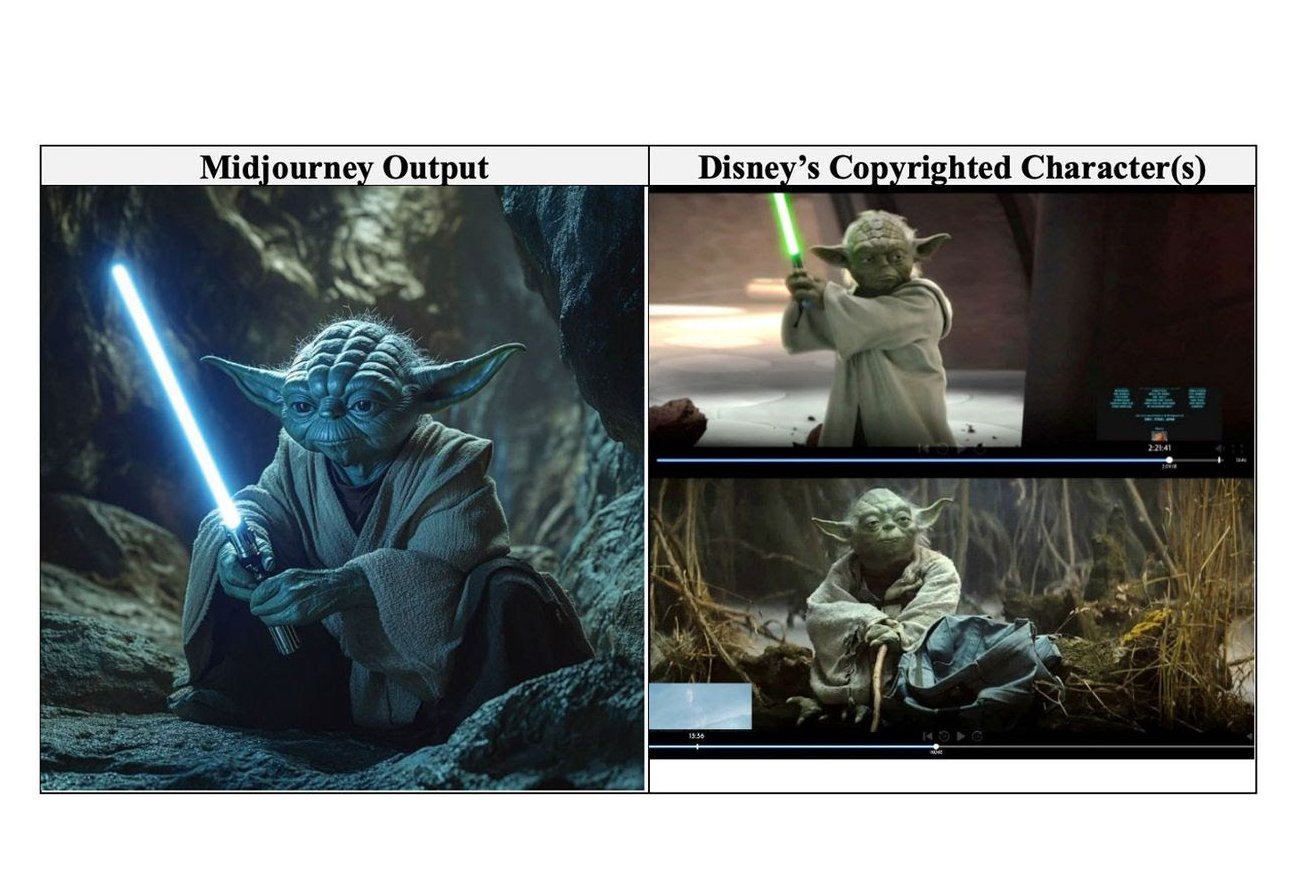 - Generating Copyrighted Images: The result is an AI capable of producing near-photorealistic depictions of copyrighted characters—Yoda, the Minions, Iron Man, Harry Potter, Elsa, and more—on command. The lawsuit includes chilling side-by-side comparisons, showing Midjourney-generated scenes that closely mimic frames from major blockbusters, including Avengers: Infinity War.