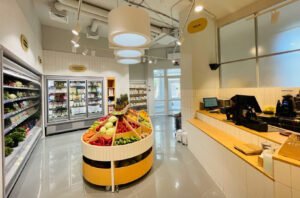 From the moment you step inside, the visual language of health is immediate: bright infographics, scent-forward displays of citrus and herbs, and intimate tasting areas. It isn’t about convincing the shopper that healthy is good—it makes healthy irresistible.