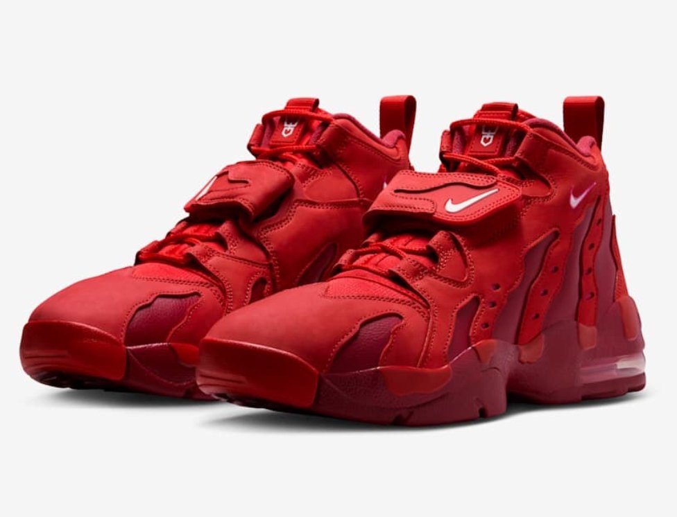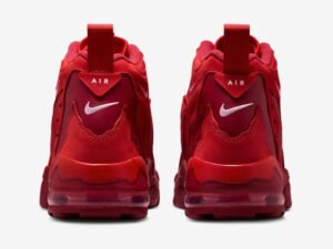 With its unmistakable claw-like overlay, chunky Air Max cushioning, and aggressive silhouette, the shoe defined an era of brash design and athletic performance. The “University Red” colorway cranks the volume even higher—replacing the classic Varsity Maize with a bold, blood-red upper that screams with energy. It’s vintage Nike maximalism, refreshed for 2025.