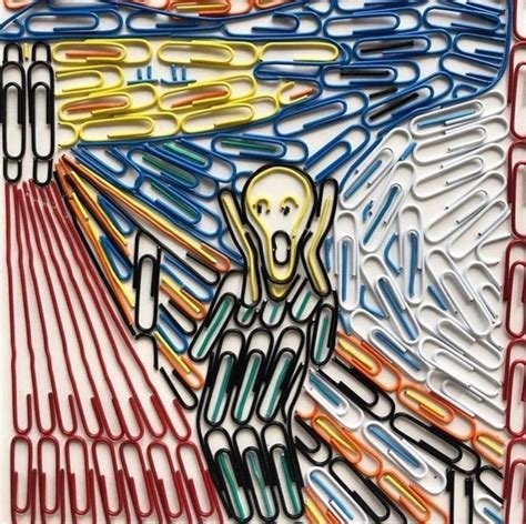The final effect is both familiar and novel—we instantly recognize The Scream, yet we also appreciate the ingenuity of using paper clips to reconstruct something so deeply emotive.